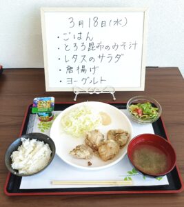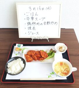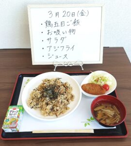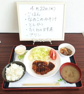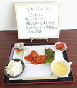 昼食は調理員が毎日手作りのお食事を250円で提供させて頂いております。